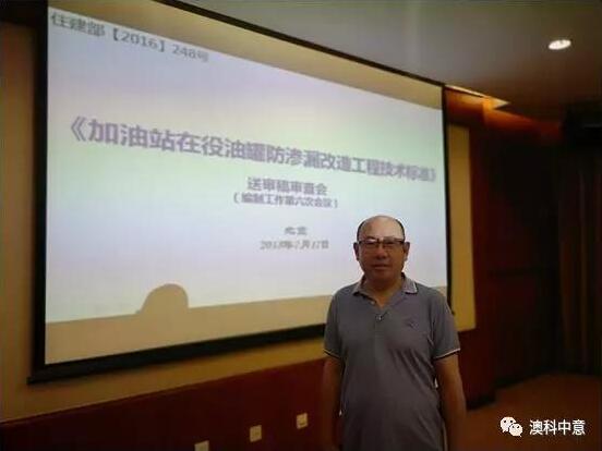 2018年7月17日,中國石化股份有限公司工程部組織,青島安全工程院承辦,澳科中意?協(xié)辦的《加油站在役油罐防滲漏改造工程技術(shù)標(biāo)準(zhǔn)》報(bào)批定稿會(huì)在北京召開,會(huì)議邀請了中國石化銷售有限公司、中國石化技術(shù)中心站、中國石化工程建設(shè)有限公司、中國人民解放軍總后勤部建筑設(shè)計(jì)研究院、中國石油流通協(xié)會(huì)、國家玻璃鋼制品質(zhì)量監(jiān)督檢驗(yàn)中心、加拿大ZCL Composites Inc,、鎮(zhèn)海石化工程股份有限公司、北京玻璃鋼研究設(shè)計(jì)院等相關(guān)單位參加,澳科中意?董事長孫顯潔先生出席了本次會(huì)議。